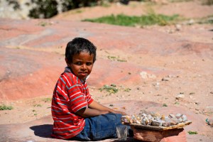 7. You will be inundated with Bedouin salesmen. Smile, keep it friendly, but keep walking. Try to avoid looking at things you’re not really interested in buying. If you show even a tiny bit of interest, it’s over. (Quick note: The salesmen come in many shapes and sizes. You’ll even find little boys hawking “Rocks from Petra” (see photo below).