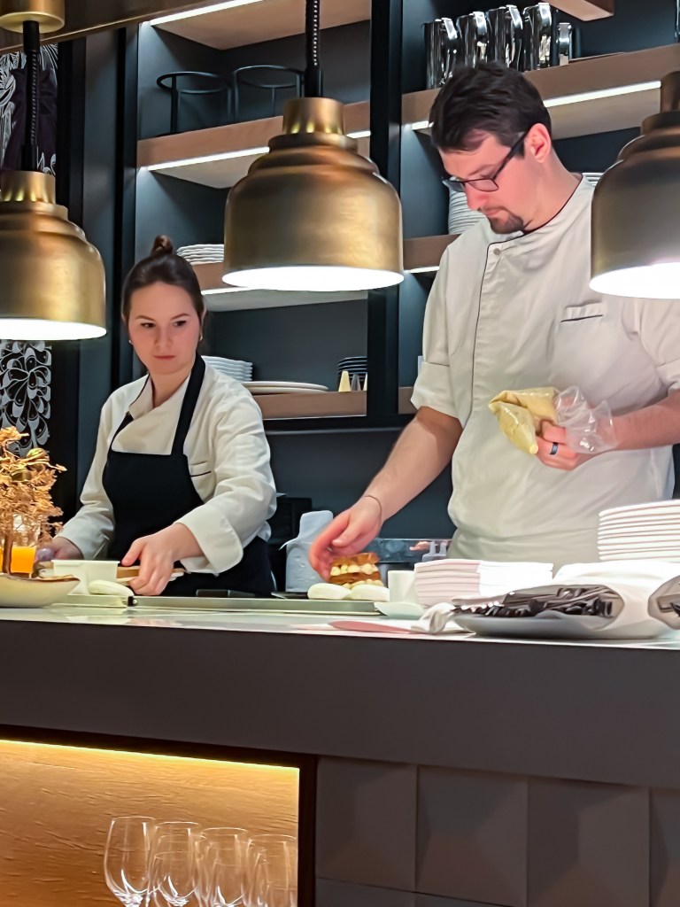So…my friend and I decided to return to Spago on our last evening in Budapest, before she sailed off on AMA Waterways, and I headed home to Chicago. It was amazing the second time around as well! This time, we were seated right in front of the kitchen, where we got to experience first hand the cooking and plating of both entrees and desserts.