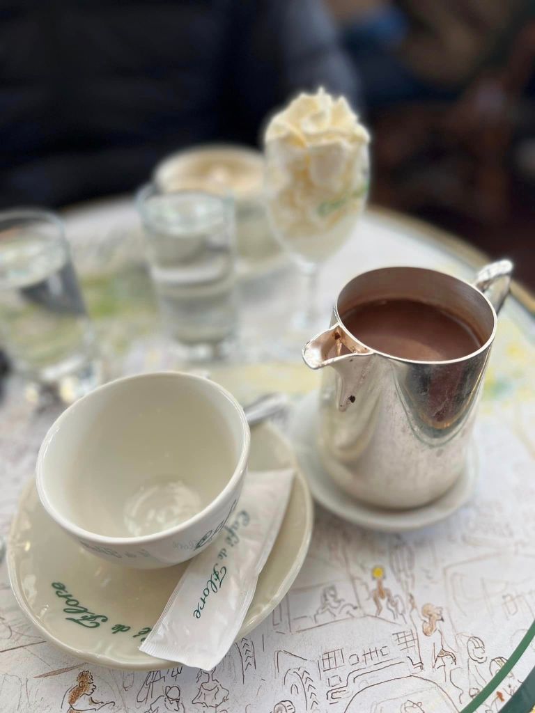 Paris has some of the best restaurants in the world. Try not to miss the cafés and coffee shops as well. I’m pretty sure we found the best café in all of Paris, serving Hot Chocolate with freshly whipped cream!