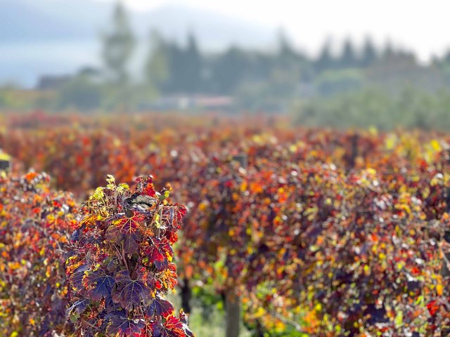 The vines were full of color, leaves in every shade of green, gold, and red, with grapes tucked beneath like little hidden treasures.